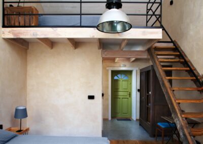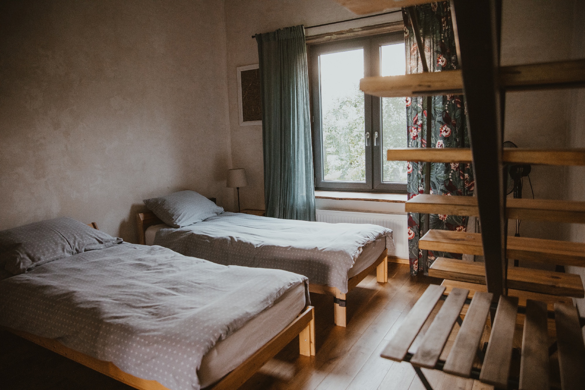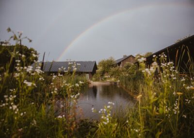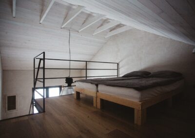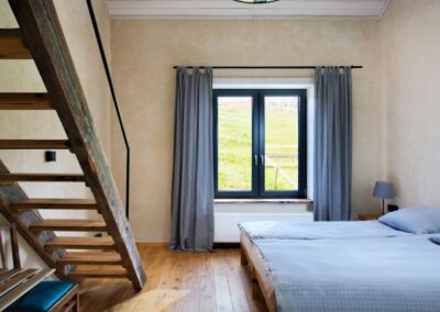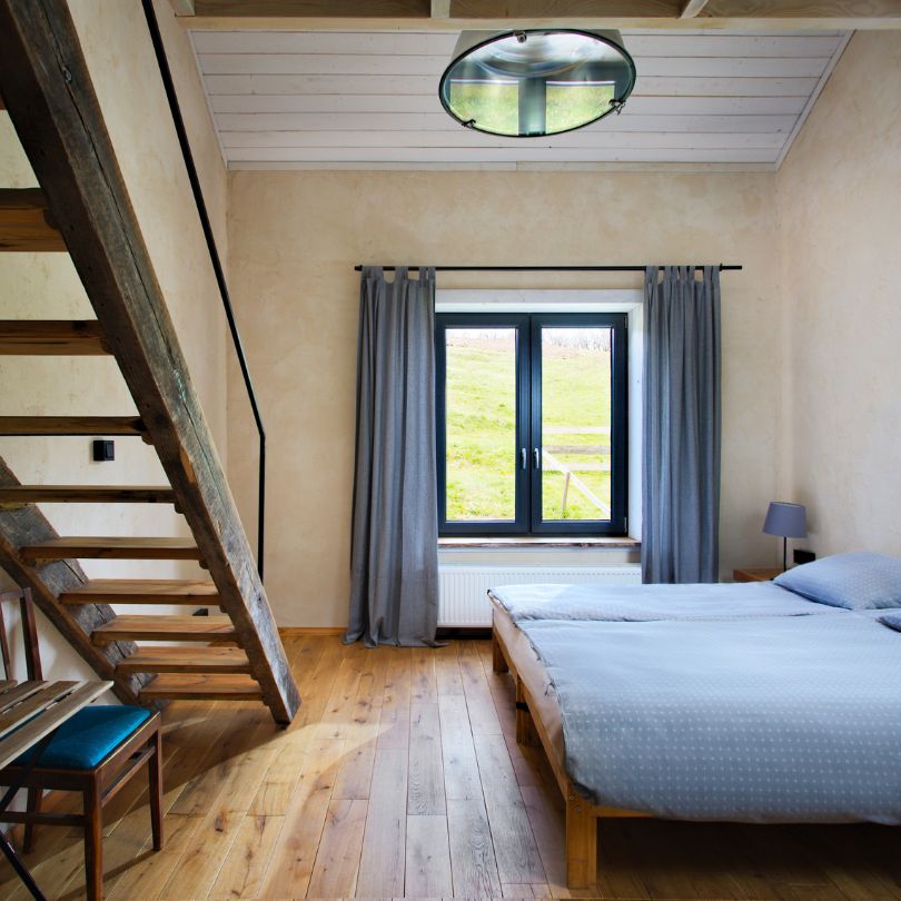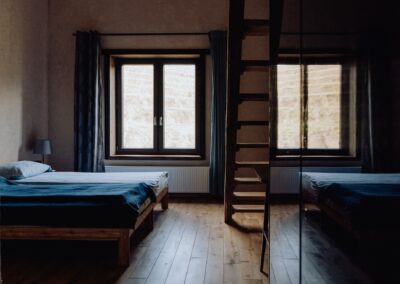 Do waszej dyspozycji jest 9 pokoi w dwóch domach wybudowanych w ekologicznej technologii „strawbale’’. Jest to konstrukcja szkieletowa wypełniona kostkami żytniej słomy. Każdy pokój z osobnym wejściem, antresolą i łazienką (ręczniki i suszarki). Dwa łóżka na dole i kolejne dwa na dużej antresoli. Każdy pokój dla max 4 osób.